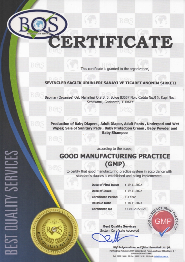 Kalite kavramını teorik yapıdan sıyırıp saha uygulamasına aktarma ve sadece kalite ile kalmayıp aynı zamanda geliştirme ve inovasyona yönelik çalışmaları ile Sevinçler Sağlık Ürünleri A.Ş kuruluşundan bu yana profesyonel ekibi ile üretim sürecinin başından sonuna kadar kesintisiz başındadır.Kalite kontrol ekibimiz; işinin hassas olduğunun bilincinde olup, belirlenen şartlara uygun olarak üretim gerçekleştirmek için hataları saptamak ve trendleri görmek amacıyla yürütülen eylemler ile bu eylemlerde kullanılan teknikler ve araçlar ile kalite yönetimini profesyonelce devam ettirmektedir. Sevinçler Sağlık Ürünleri A.Ş örnek bir işletmenin kalite kontrol kavramına bakış açısını sadece üretmek değil ,bununla birlikte gelişim sürecinin ortaya konulması amaçlanmıştır. Bu amaçla, kalite kontrol süreçlerin her birinde kontrol uzmanlarımız işini en hijyenik ve kusursuz şekilde yaparak verileri 24 saat kayıt altında arşivleyerek yapması ürünlerin kalite anlamındaki problemlerini en az düzeye indirmeyi amaçlamaktadır. Teknik ve doküman altyapı çalışmaları yanı sıra verilen eğitimleri de kapsayan sürekli iyileştirme faaliyetleri gerçekleştirilmektedir. Bu faaliyetler sayesinde dünyanın bir çok yerindeki tüketicilerimiz ürünlerimizin gönül rahatlığıyla kullanmaktadırlar.