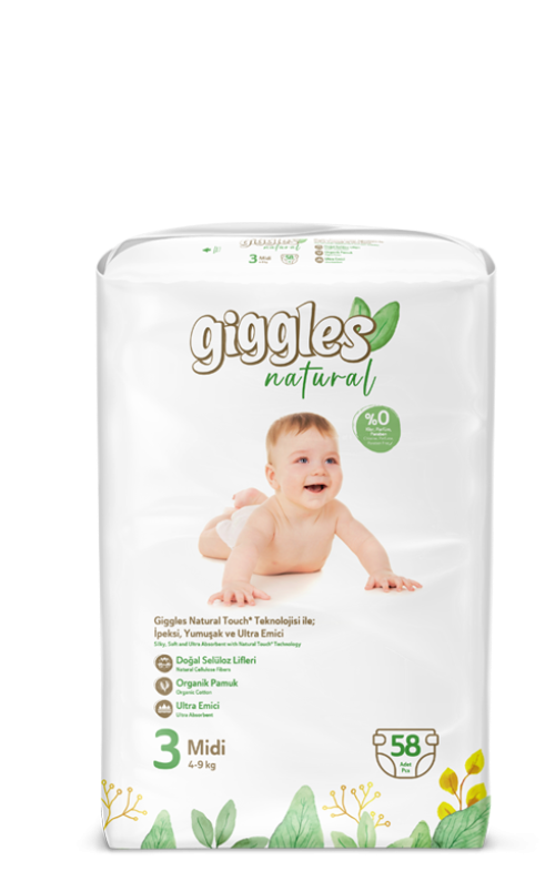 Giggles Natural Bebek Bezi - Sevinçler Sağlık Ürünleri - Bebek Bezi, Islak Mendil, Kadın Pedi, Emici Külot ve Yetişkin Hasta Bezi