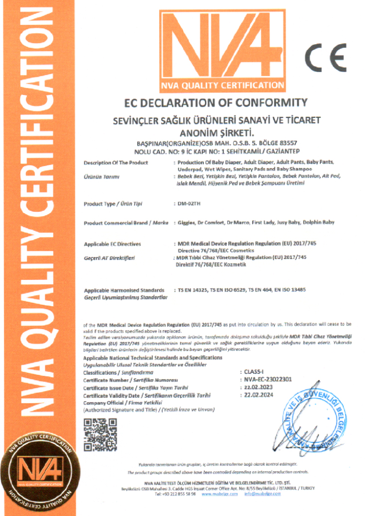 Sevinçler Sağlık Ürünleri Dünya insanlarının hayatını kolaylaştırmak için, kullanıcıların rahatını düşünerek ve teknolojiyi takip ederek hijyenik ürünler üretir ve bu ürünleri yüksek kalite uygun fiyat prensibiyle tüketiciye sunar.